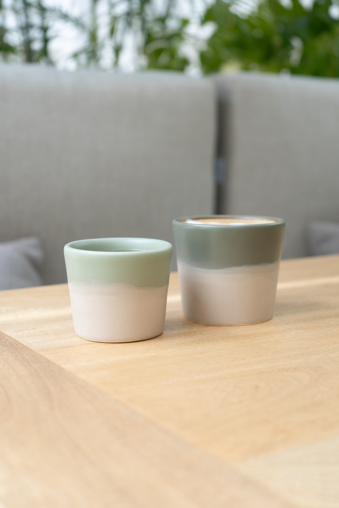 Tazas diseñadas para el café de especialidad. Tienen mayor grosor de aislamiento para conservar la temperatura. El fondo es redondo, para una mejor dinámica de fluidos, la cual permite desarrollar un sabor más completo en la bebida.